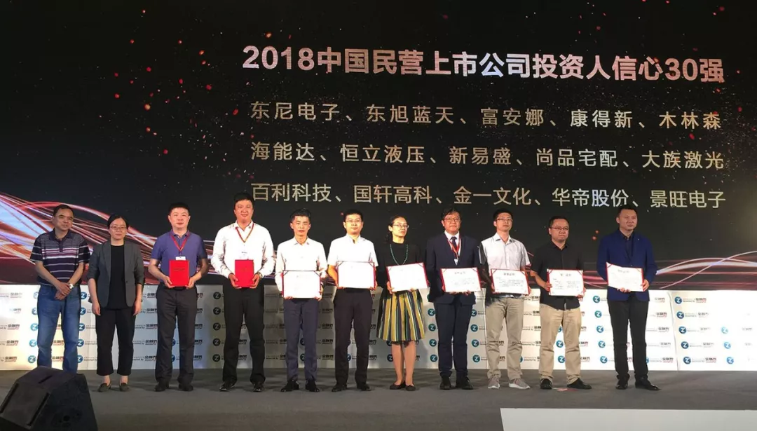 木林森(股票代码:002745)基于自身卓越表现,荣获金智奖“2018中国民营上市公司投资人信心30强”。